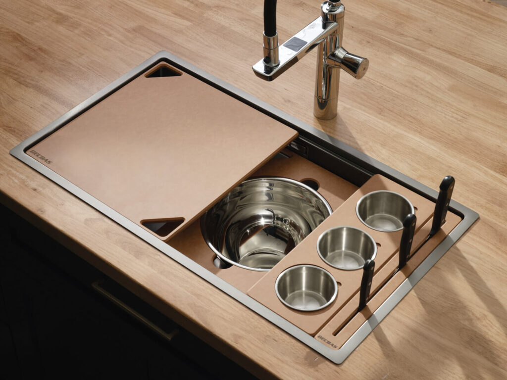 贝克巴斯为垃圾处理器专用无缝水槽开发了多种配件产品,充分利用水槽上方的空间,使烹饪备餐更加得心应手;由于是根据自家产品量身定做,所以能够完美适配无缝水槽产品,极大的拓展了厨房台面的使用空间,使小厨房也能享受大单盆的便利。